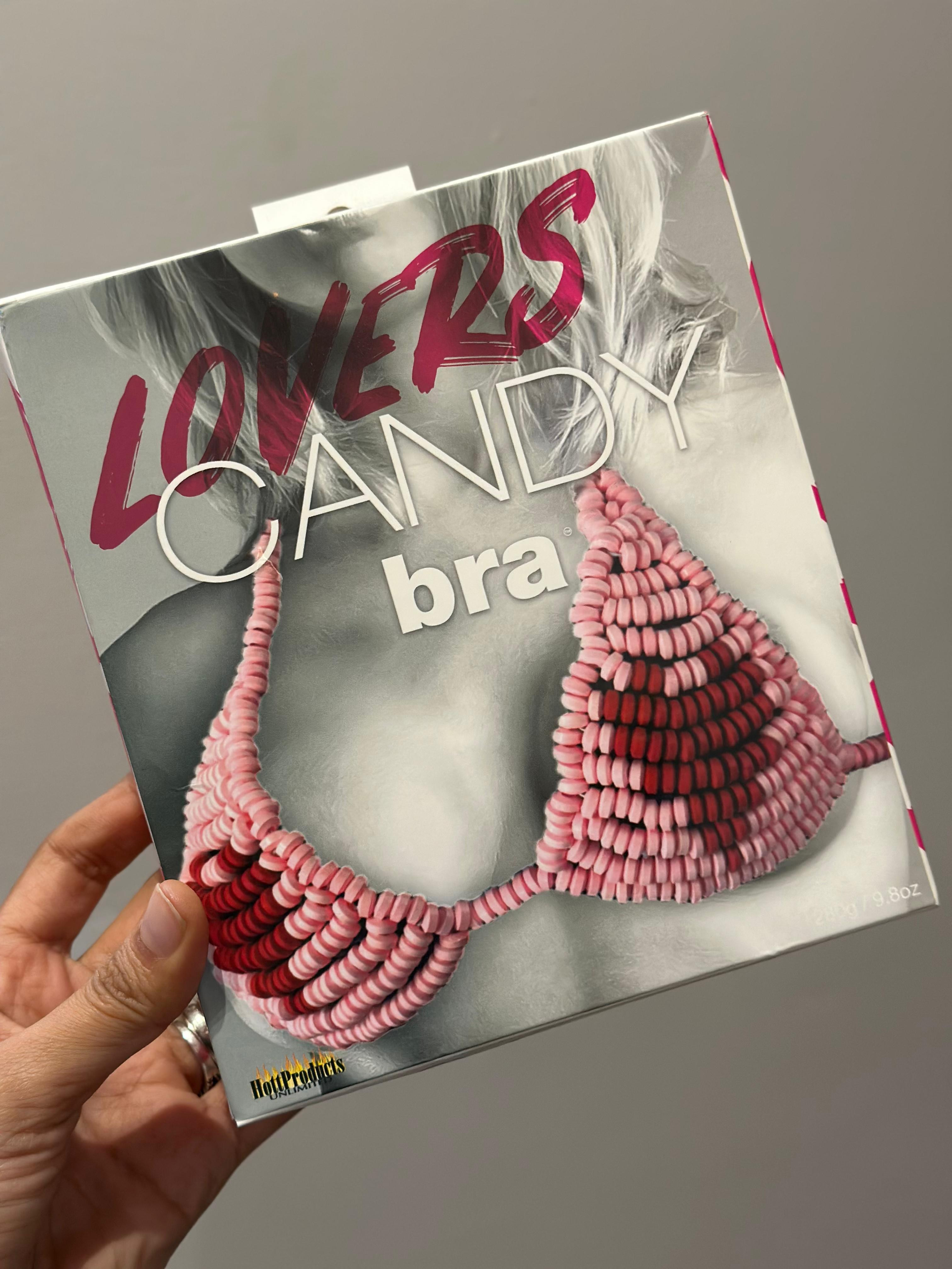 Es un sujetador hecho de cuentas de caramelo con sabor a fruta.